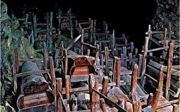 甲定洞葬:位于貴陽(yáng)甲定村栗木山的半山腰上,上下有兩個(gè)洞口,棺柩擺放在為繁樹(shù)濃陰所掩的上洞,洞高十余米,寬亦有十余米,縱深約有三四十米。不過(guò),這個(gè)洞只能看不能進(jìn)入,因為洞口堆滿(mǎn)殘破朽爛的棺材,要想進(jìn)去,卻無(wú)路可覓。