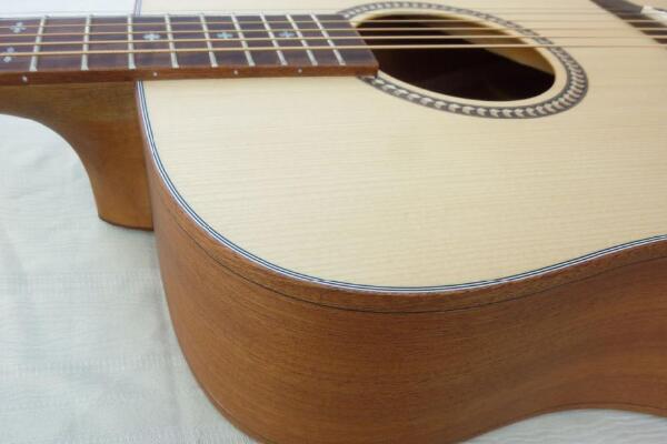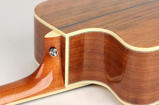 單板是由一整塊自然的木頭做成的,它的紋路不規則的。單板吉他又被分為三個(gè)類(lèi)型,即面單、面側單和全單。其中,面單指的是吉他面板是單板;面側單指的是吉他的面板和側板都是單板;全單指的是吉他的面板、底板、側板都是單板。單板吉他的優(yōu)點(diǎn)有,內部結構自然、緊湊,能夠順應樂(lè )器的發(fā)聲原理,有更好的共鳴效果;缺點(diǎn)有,容易受到天氣的影響,濕氣侵入會(huì )使吉他膨脹、扭曲,濕度越高,扭曲的程度就越明顯。