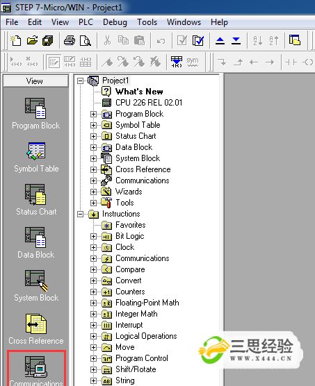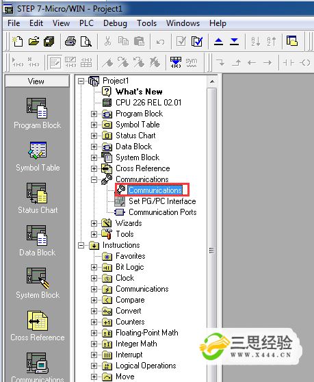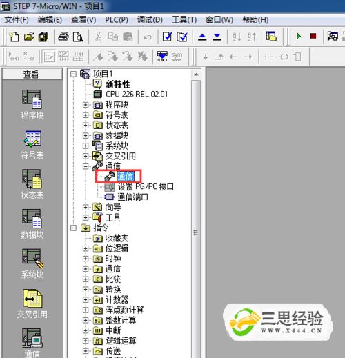 在運行西門(mén)子STEP7-Micro/WIN編程軟件后,雙擊“項目(Programmas)”中的展開(kāi)項“通信(Communications)”下面的“通信(Communications)”。進(jìn)入“通信(Communications)”的屬性面板。后面的步驟與“方法1”一致。
