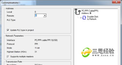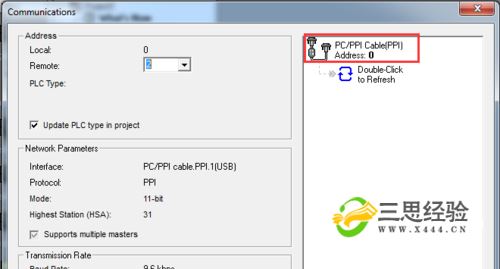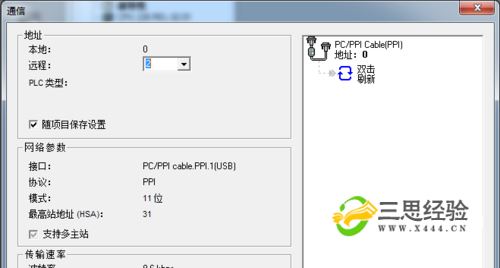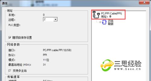 在屬性面板單擊左下角的“設置PG/PC接口(Set PG/PC interface)”,或單擊右上角的“PC/PPI Cable (PPI)地址”。