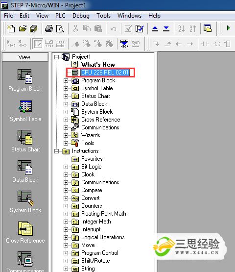 在運行西門(mén)子STEP7-Micro/WIN編程軟件后,雙擊“項目(Programmas)”中的展開(kāi)項CPU。
