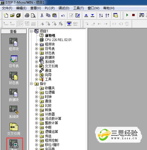 在運行西門(mén)子STEP7-Micro/WIN編程軟件后,單擊左側“視圖(View)”【又譯“查看”】菜單中的“通信(Communications)”按鈕,進(jìn)入“通信(Communications)”的屬性面板。后面的步驟與“方法1”一致。