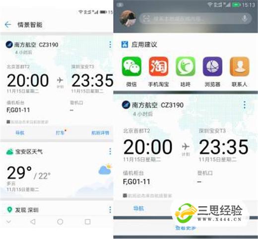 華為手機智能助手可以幫助我們規劃出門(mén)時(shí)間和路線(xiàn),比如我們搭乘中午12點(diǎn)的航班,它會(huì )提示我們九點(diǎn)帶好行李開(kāi)始出門(mén),然后導航交通工具前往機場(chǎng)。