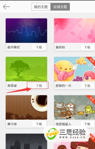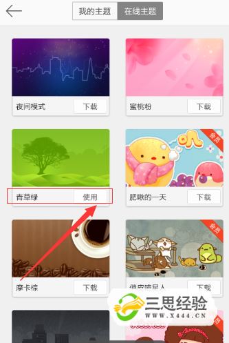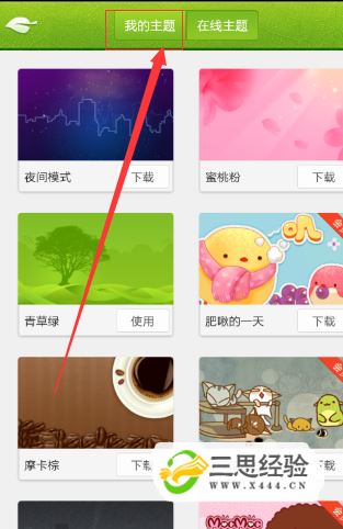 我們點(diǎn)擊安裝之后,等待一步步安裝成功之后,然后有進(jìn)入到了主題界面,這時(shí)候我們注意到上面有在線(xiàn)主題和我的主題界面,我們點(diǎn)擊選項我的主題,即可看到我們目前成功使用的主題。