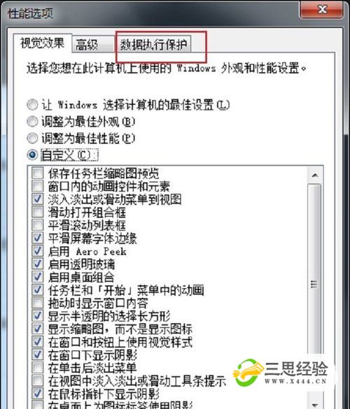 第三步在進(jìn)去性能選項后,點(diǎn)擊“數據執行保護”,如下圖所示:
