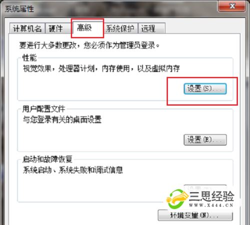 第二步進(jìn)去系統屬性后,在性能那里選擇“設置”,如下圖所示: