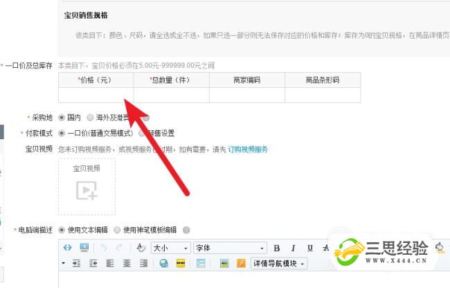 設定寶貝的價(jià)格。