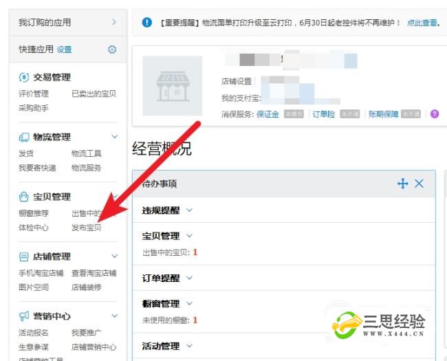 點(diǎn)擊左側的發(fā)布寶貝命令。