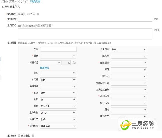 按照寶貝詳情提示,進(jìn)行對應的寶貝信息填寫(xiě)。