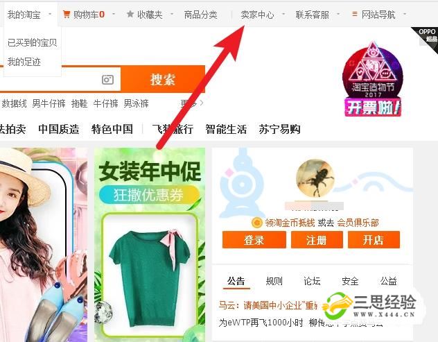 首先進(jìn)入淘寶官方網(wǎng)站后點(diǎn)擊賣(mài)家中心。