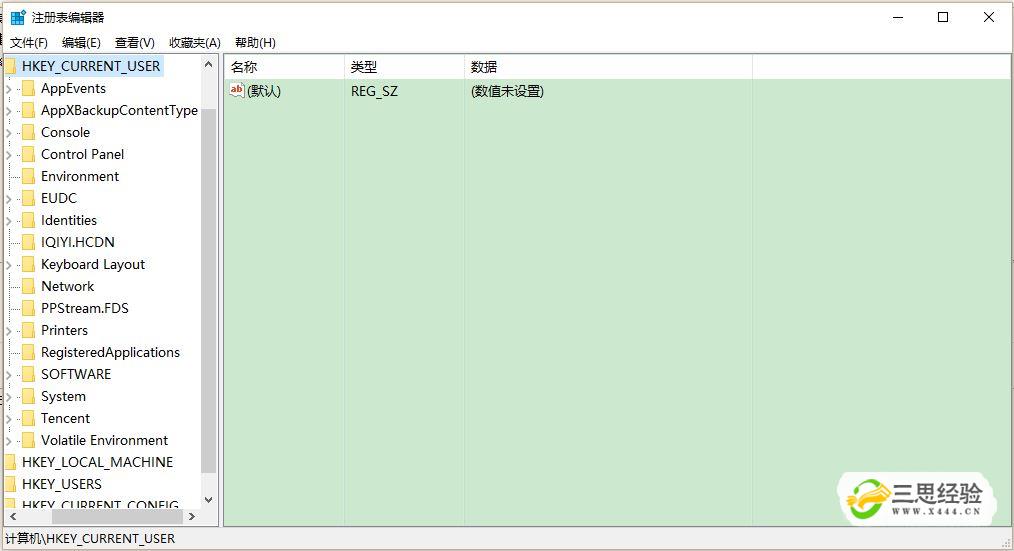 點(diǎn)擊“確定”,打開(kāi)“注冊表編輯器”。