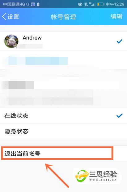 5.第五步,選擇點(diǎn)擊下方的“退出當前帳號”按鈕;