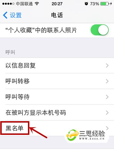 進(jìn)入“電話(huà)”選項之后,同樣地向下滑動(dòng),就看到“黑名單”選項了。