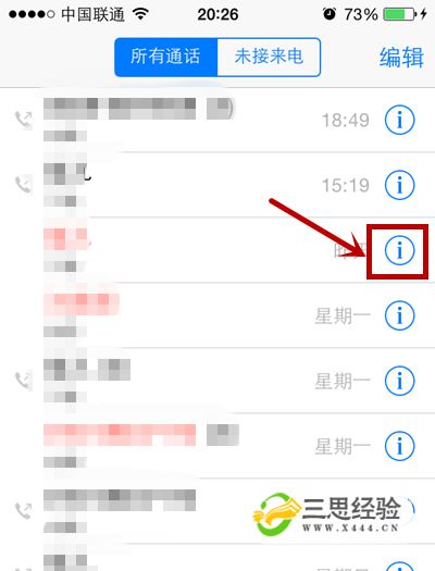 點(diǎn)擊iPhone下方的電話(huà)圖標,進(jìn)入之后選擇“最近通話(huà)”選項,這里可以看到與別人的通話(huà)記錄,選擇一個(gè)你不想接聽(tīng)的號碼,點(diǎn)擊右側的“i”圖標。