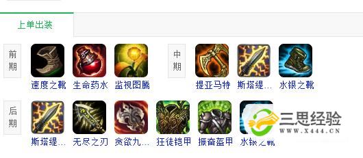 還有一個(gè)就是順風(fēng)局的出裝,用腐敗藥水出門(mén),接著(zhù)直接出三項,有了三項我們的攻擊力都會(huì )比較厲害,再帶上一個(gè)無(wú)盡,那傷害真的是逆天啦,鞋子的話(huà),布甲鞋,水銀鞋都可以,接著(zhù)就是綠叉,電刀,最后出一個(gè)水銀刀,水銀刀可以幫助我們不受敵人的束縛。